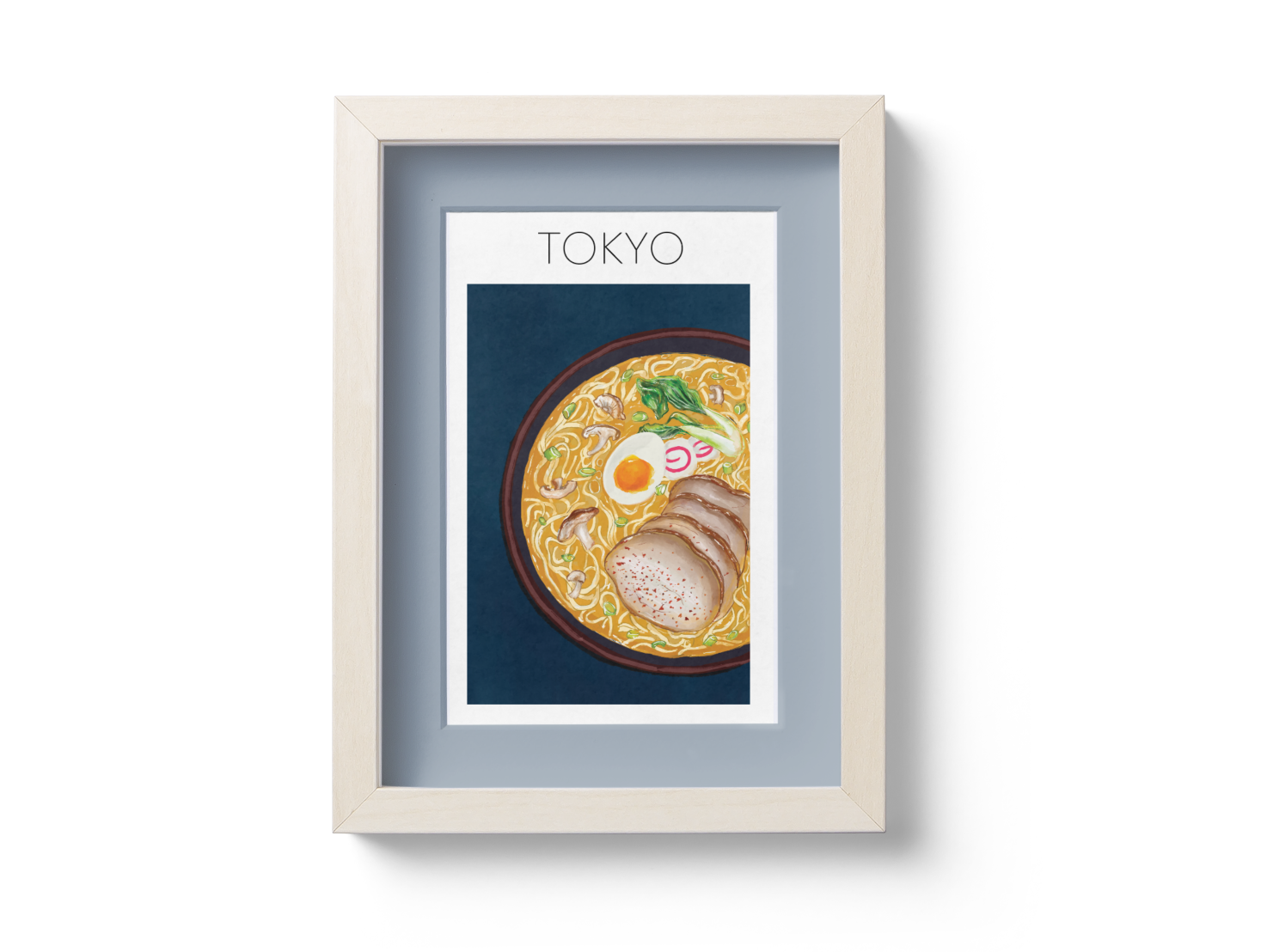 The Process: I spent time researching popular, traditional food from each city as well as incorporating culturally significant colors into the palette. This next image shows what my iPad screen looked like as I worked on the Tokyo ramen poster. 🍥
